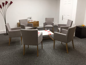 - Renting one of our meeting rooms (high table/low table setup, chairs/armchairs)